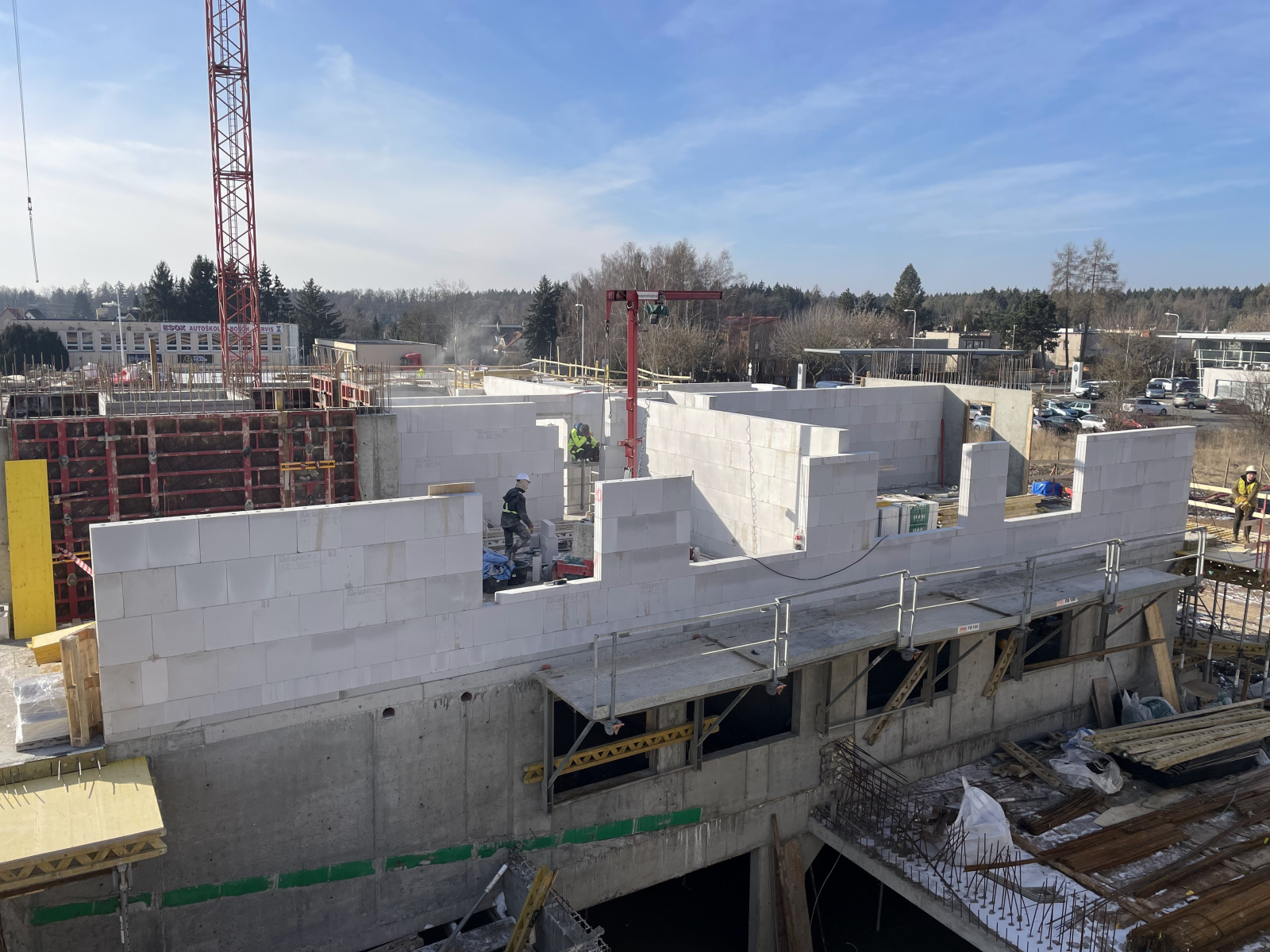 Únor na stavbě: Nová Cihelna roste do výšky i přes proměnlivé počasí