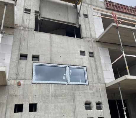 Práce na instalaci oken jsou v plném proudu a postupně se posouváme patro po patře. Každé nově osazené okno znamená, že jsme zase o krok blíže k uzavření hrubé stavby a zahájení prací v interiérech.